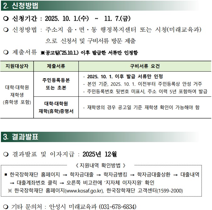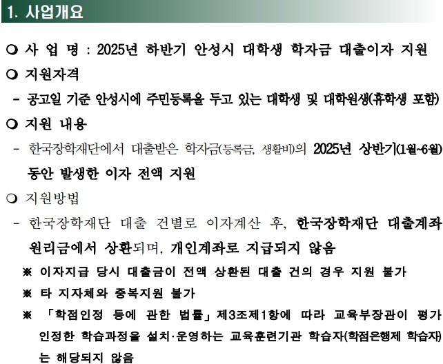 2025년 하반기 안성시 대학생 학자금 대출이자 지원 안내