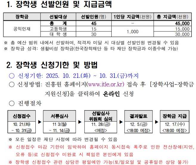 2025년도 (재)인천인재평생교육진흥원 공익인재 장학생 선발 안내