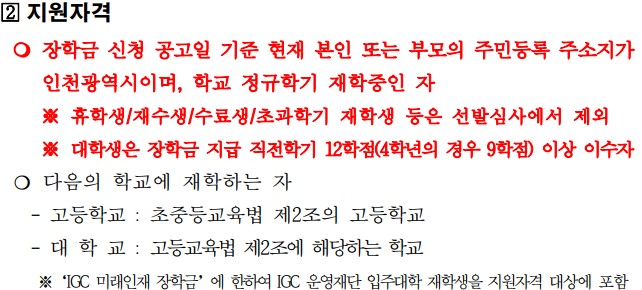 해당 장학금 문의는 인천인재평생교육진흥원 032-722-7252로 문의하시기 바랍니다.