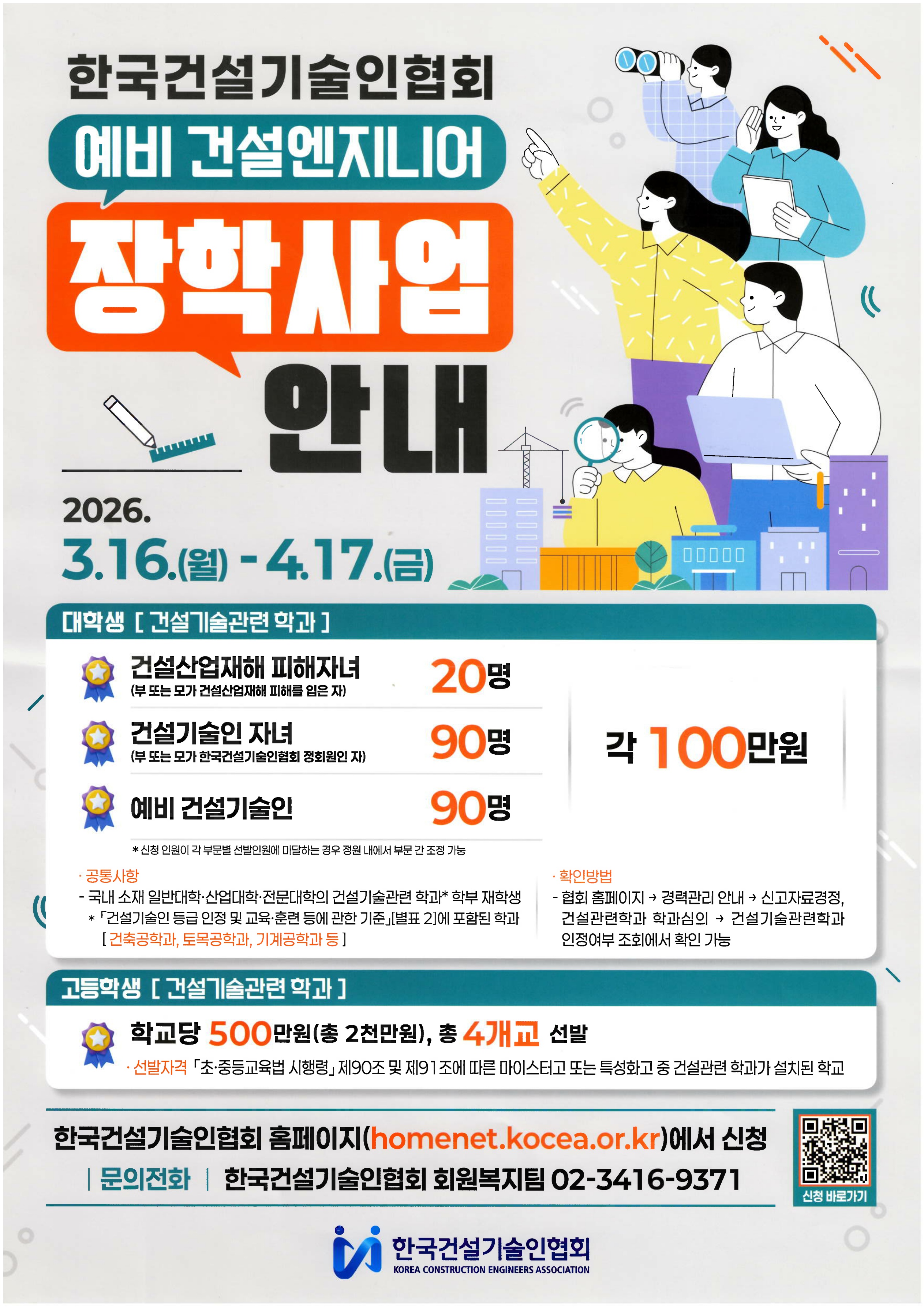 포스터 및 첨부한 '예비 건설엔지니어 장학사업 안내문'을 꼭 확인하시고