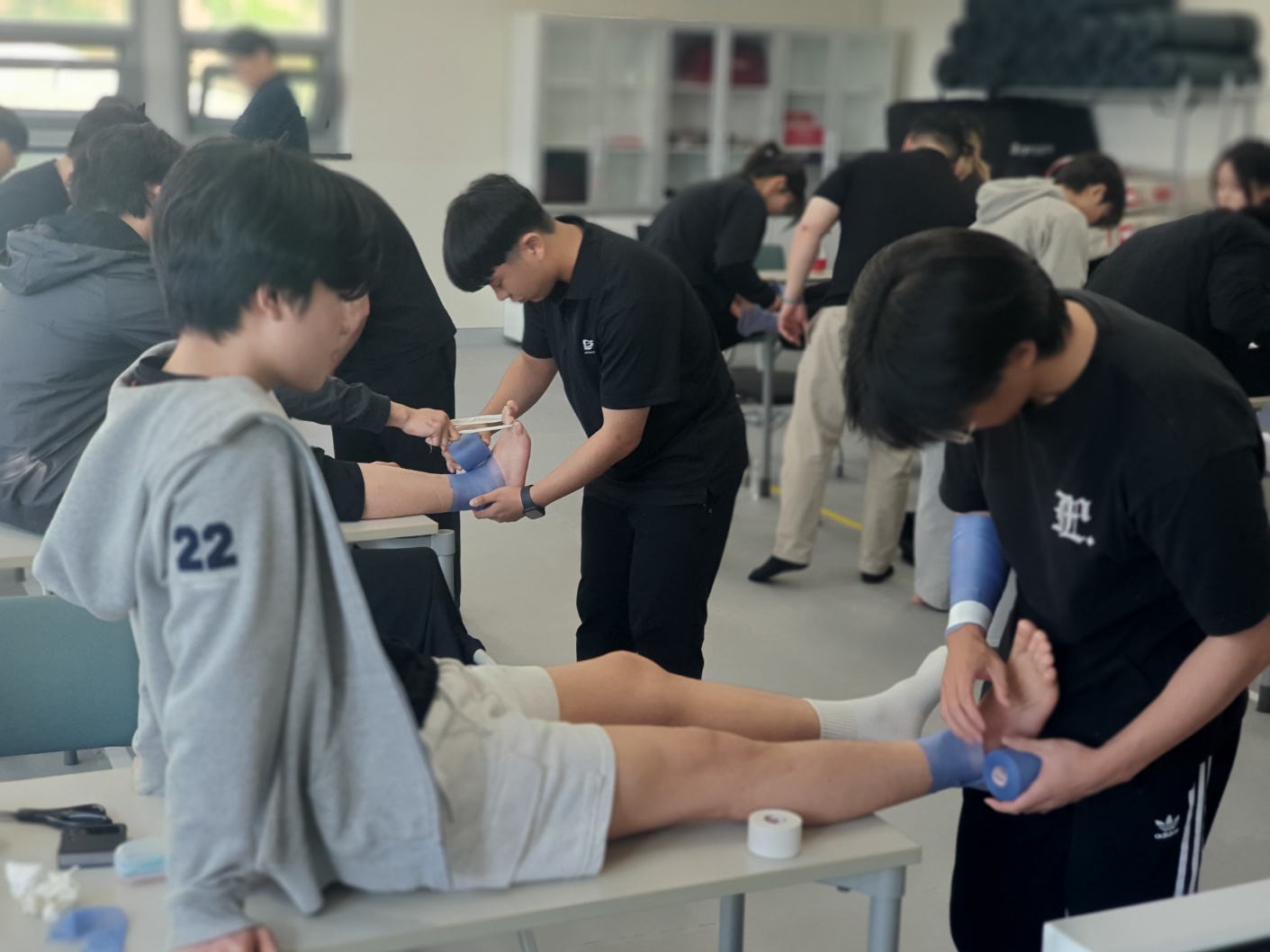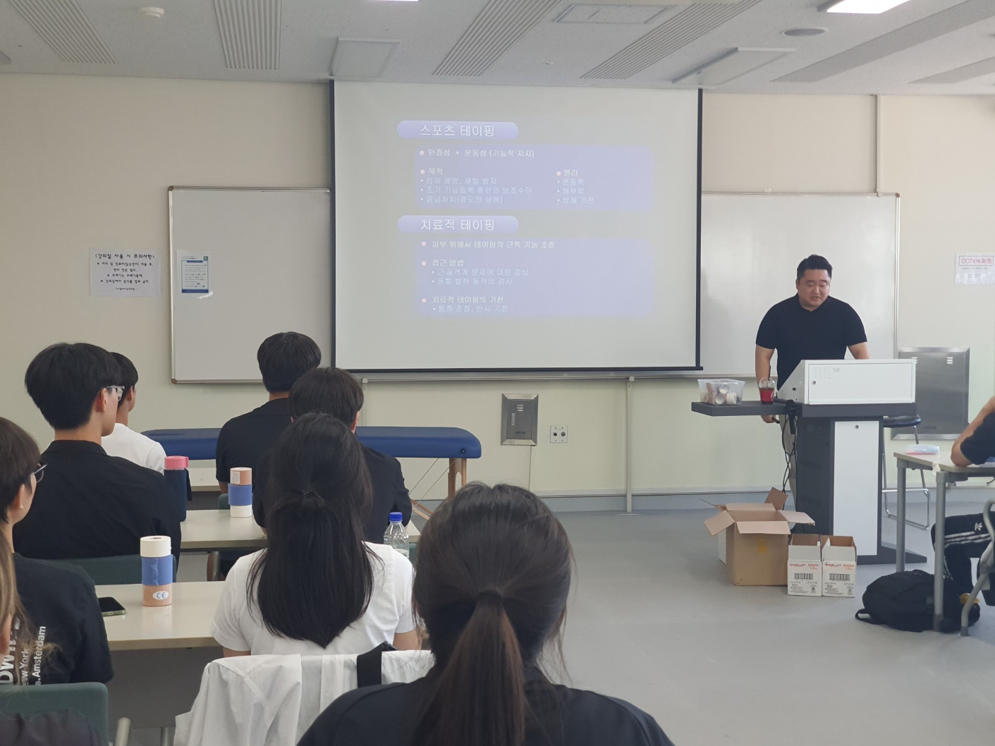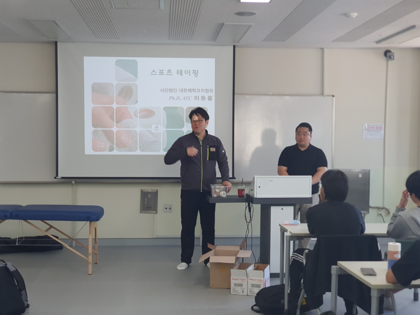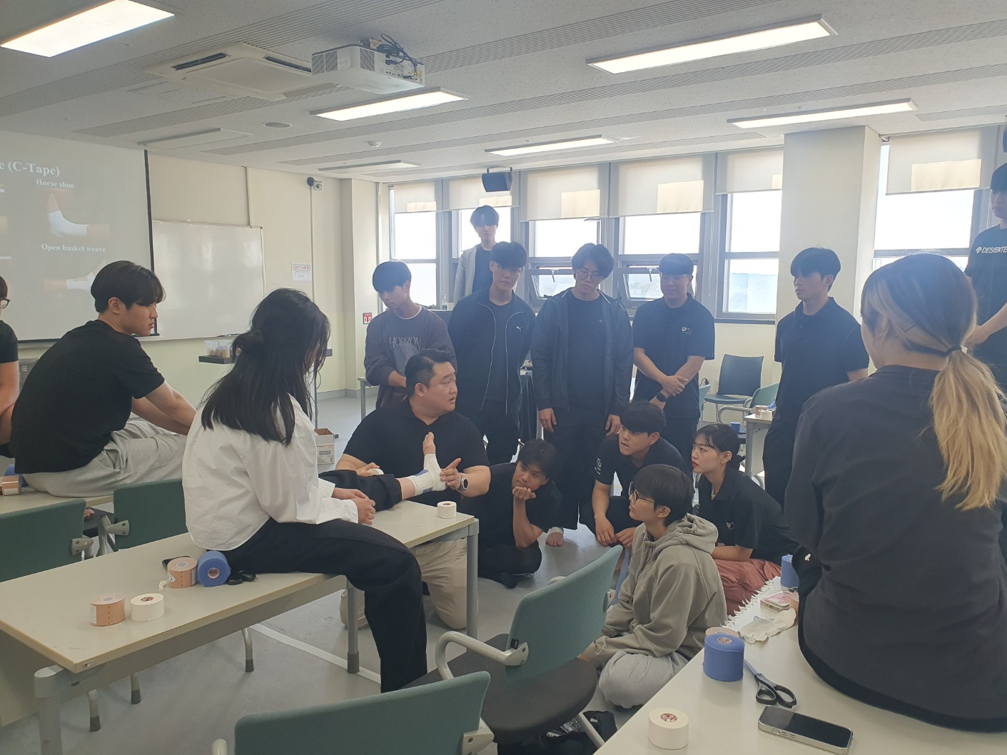 스포츠재활과 학생의 자격증 취득을 위한 스포츠테이핑 자격과정 특강이 지난 5월 16일에 있었습니다. 스포츠테이핑의 이론 및 테이핑 기법의 활용 등 학생들이 현장에서 사용할 수 있는 전문지식을 습득하고 실습해보는 좋은 교육의 기회였습니다.