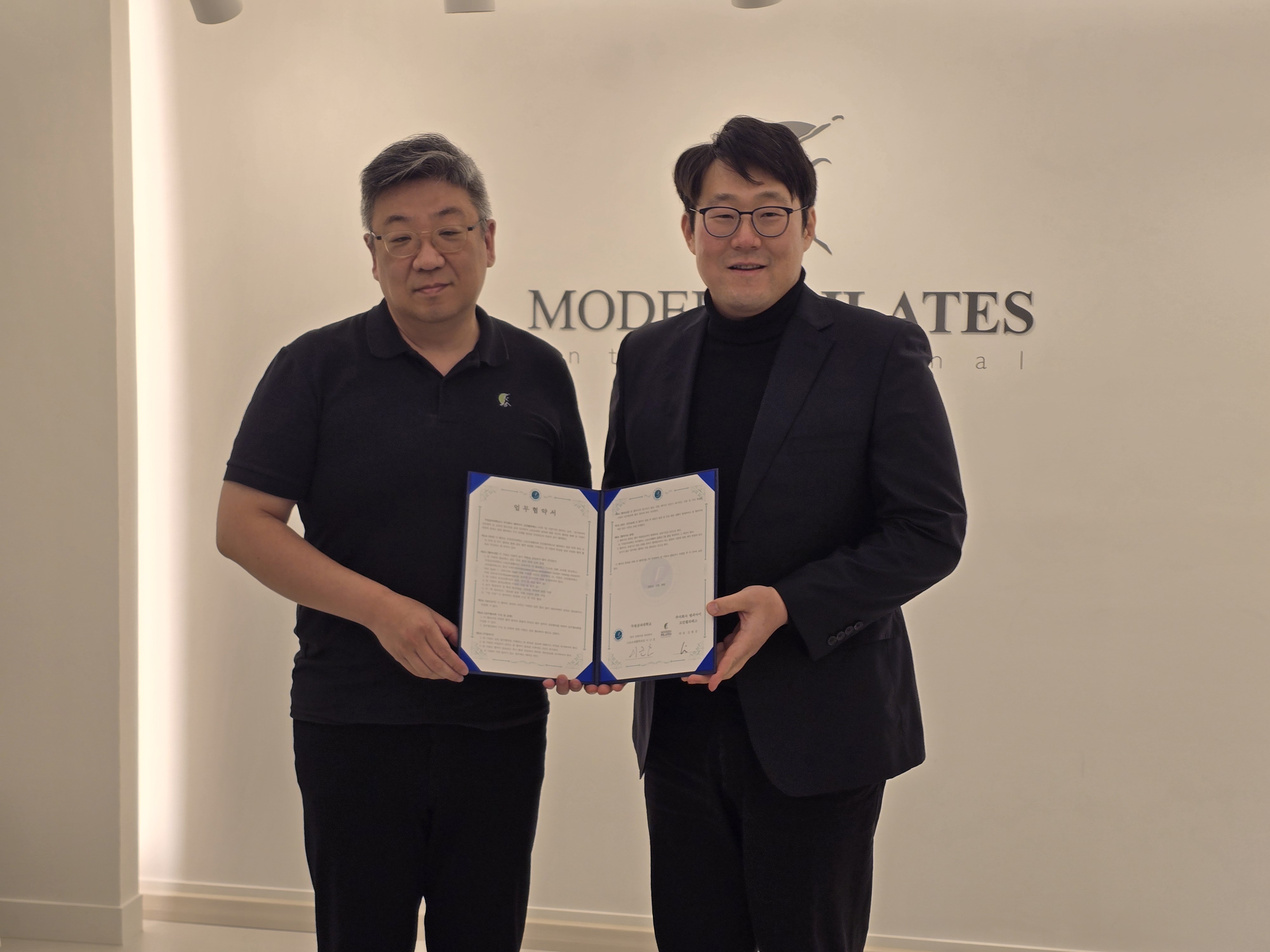 2025년 12월 8일(월)에 두원공과대학교와 모던필라테스는 전문인력 양성 교육 및 연구 협력을 위해 MOU 협약을 체결하였습니다.