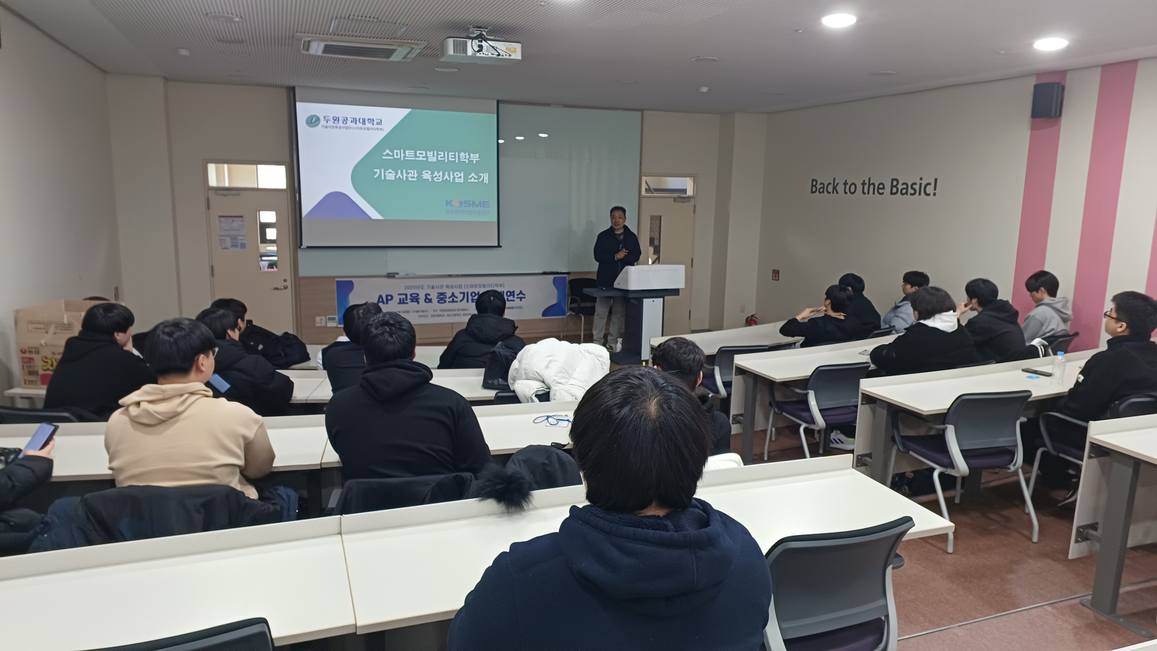 두원공과대학교 중소기업육성사업단에서는 겨울방학을 맞이하여 고등학교 기술사관 2학년 학생을 대상으로 AP교육을 1.5(월)~1.7(수) 3일 동안 실시하였습니다.