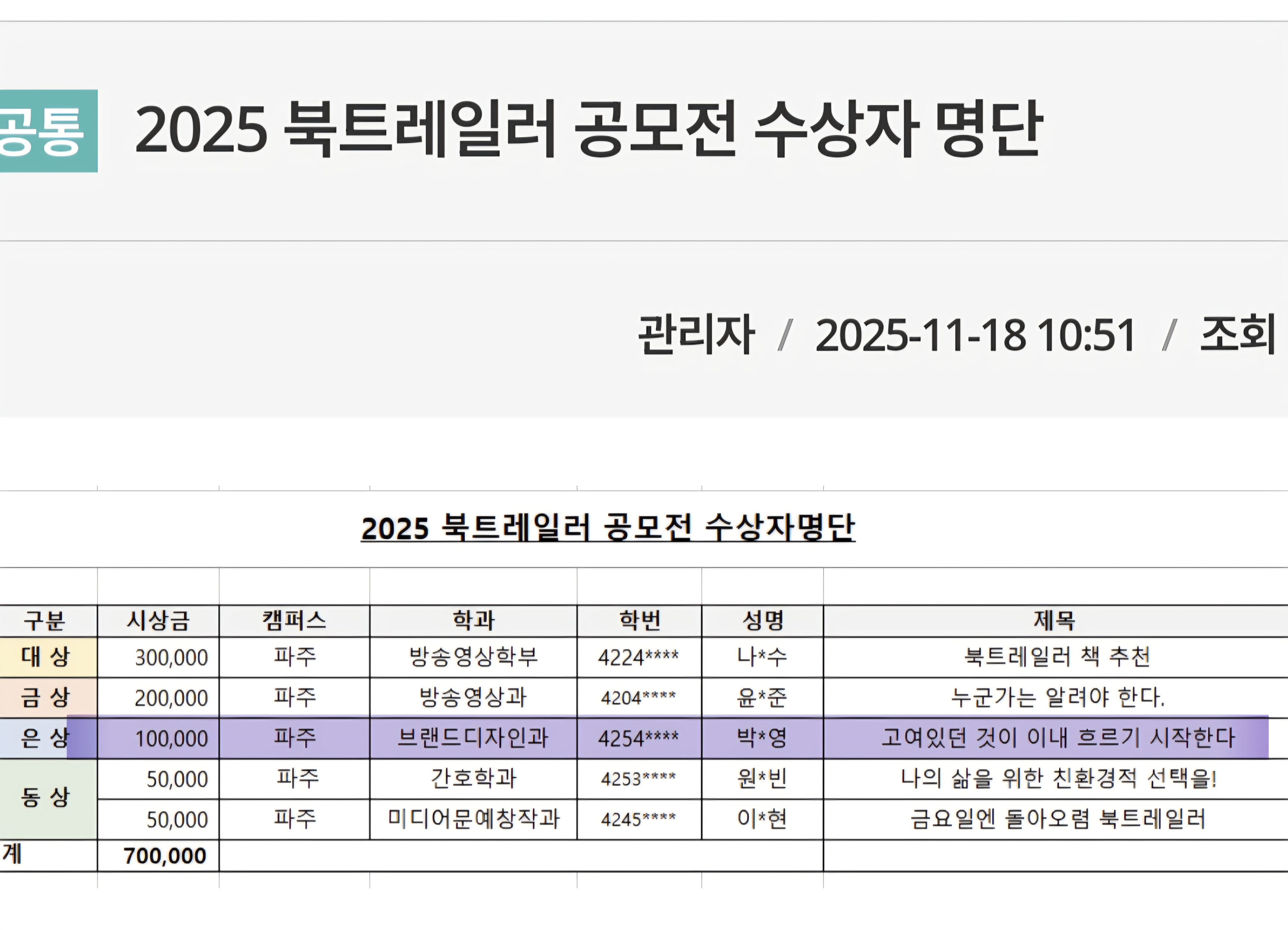교내 공모전 수상소식-브랜드디자인과 1학년 박X영