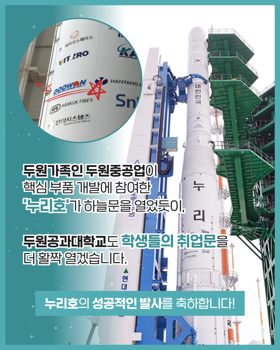 두원가족인 두원중공업이 핵심부품에 개발 참여한 ‘누리호’가