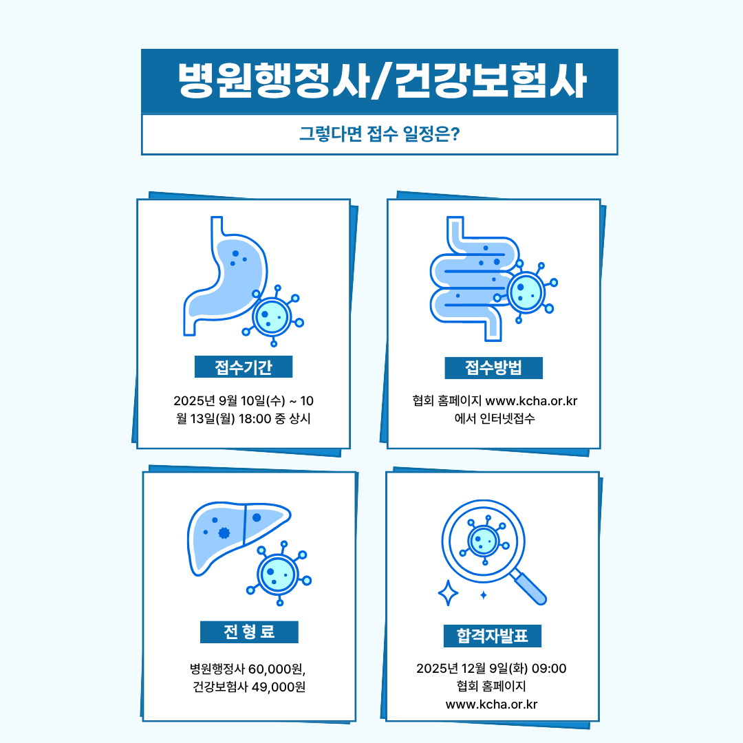fnctId=bbs,fnctNo=52 글번호 7890 2025 병원행정사 / 건강보험사 자격시험 공지 작성일 2025.09.25 수정일 2025.09.25 작성자 이주민 조회수 47 첨부파일 첨부파일이(가) 없습니다.